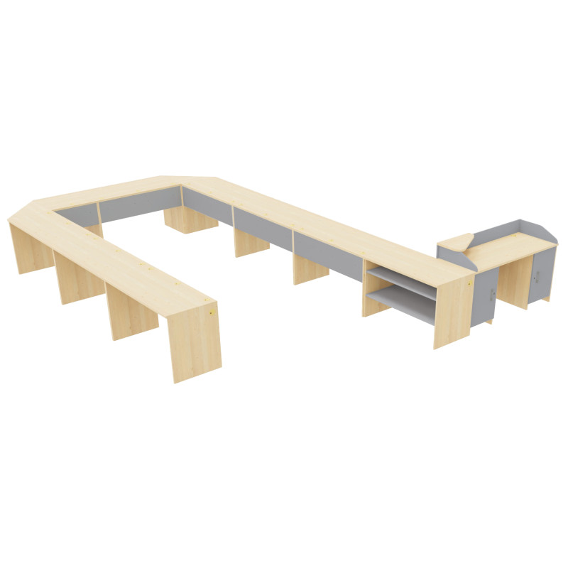 Divvietīgs galds no “Mila” kolekcijas, kas paredzēta datoru un valodu kabinetiem, ir praktiska un moderna mēbele, radīta ērtam darbam diviem lietotājiem. Tas ir ideāli piemērots mācību klasēm, datoru un termināļu kabinetiem, nodrošinot ergonomisku un efektīvu darba vidi gan skolēniem, gan skolotājiem.