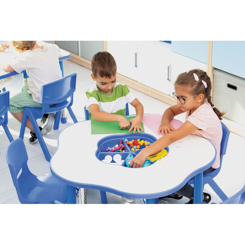 Galdiņš ir pieejams dažādās krāsās, tāpēc tas viegli iederēsies jebkurā izglītības vai mājas vidē.