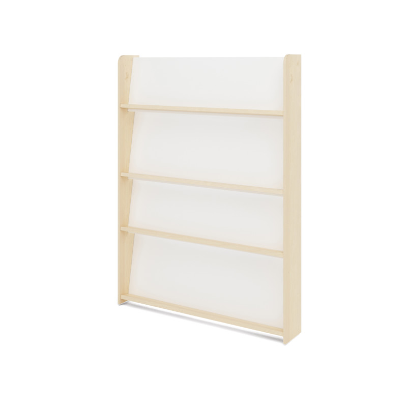Pakaramais grāmatplaukts – tas ir praktisks mēbele, paredzēts grāmatām un dekorācijām, lieliski piemērots jebkurai telpai. Konstrukcija izgatavota no bērza un baltas krāsas kokskaidu plātnes, ar četriem stingriem plauktiem bērza tonī. Plaukta aizmugure pabeigta ar baltu plāksni, kas piešķir estētisku izskatu un vizuālu vieglumu. Ideāli piemērots montēšanai pie sienas – nodrošina funkcionalitāti un taupa vietu.