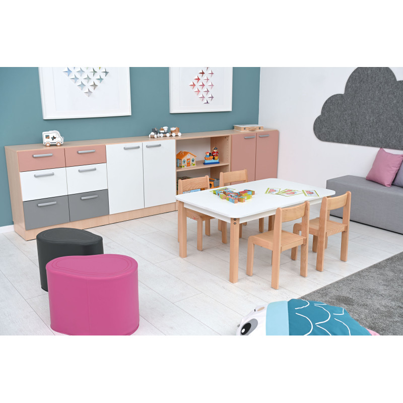 Šis komplekts lieliski piemērots bērnudārziem un skolām, kur svarīga ir izturība, funkcionalitāte un mūsdienīgs dizains.