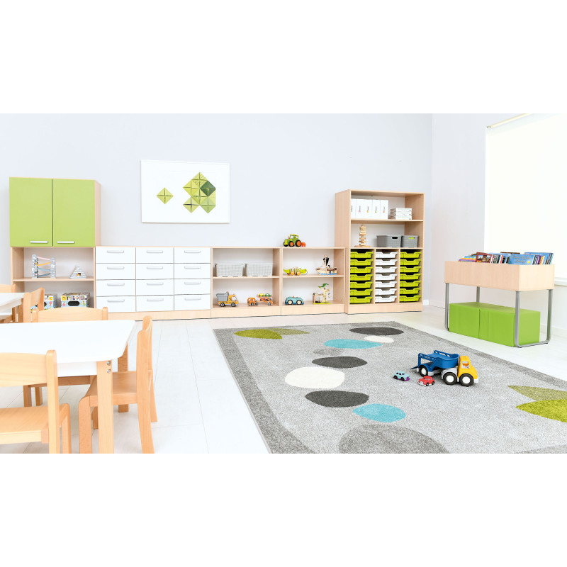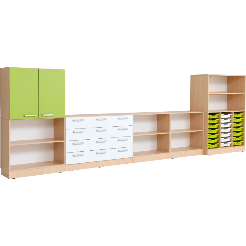 Šis funkcionālais un estētiskais mēbeļu komplekts ir izstrādāts ērtai lietu uzglabāšanai izglītības iestādēs. Pateicoties modulārajai konstrukcijai, skapīšus var viegli pielāgot dažādām telpām, nodrošinot kārtību un ergonomisku lietošanu.