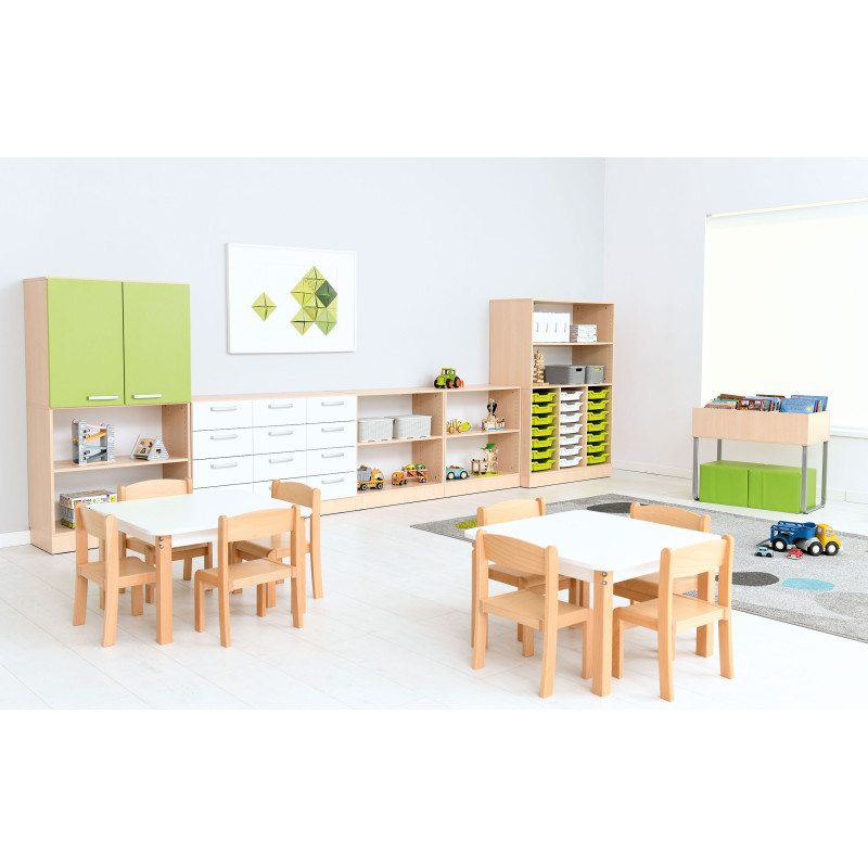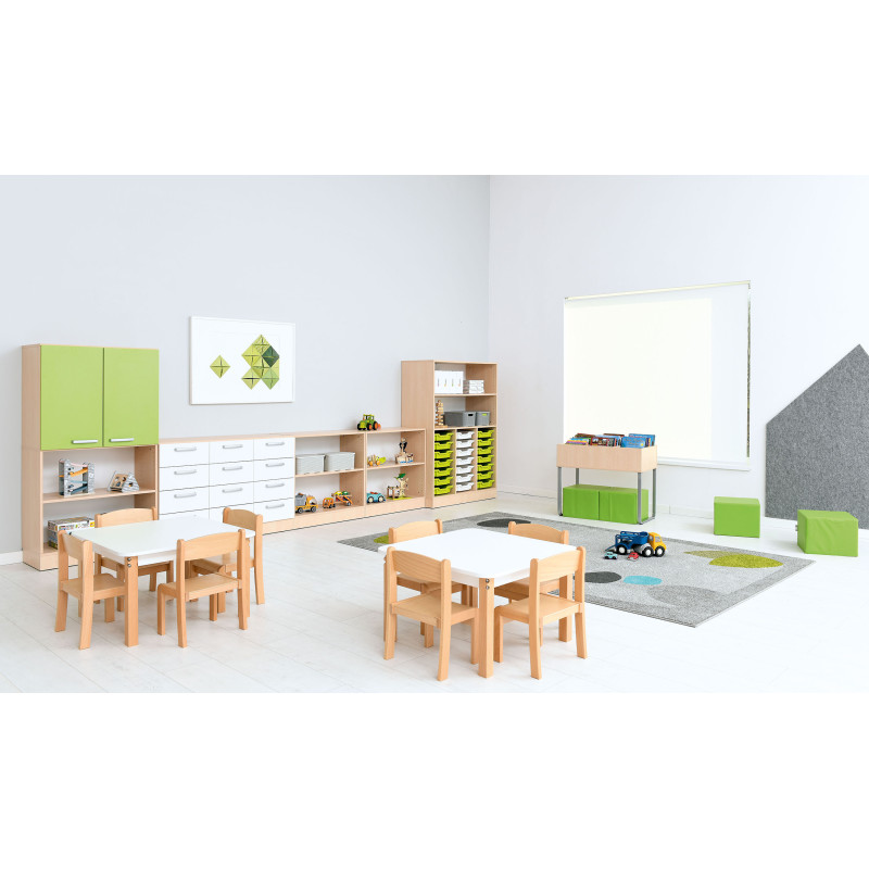 Šis komplekts lieliski piemērots bērnudārziem un skolām, kur svarīga ir izturība, funkcionalitāte un mūsdienīgs dizains.