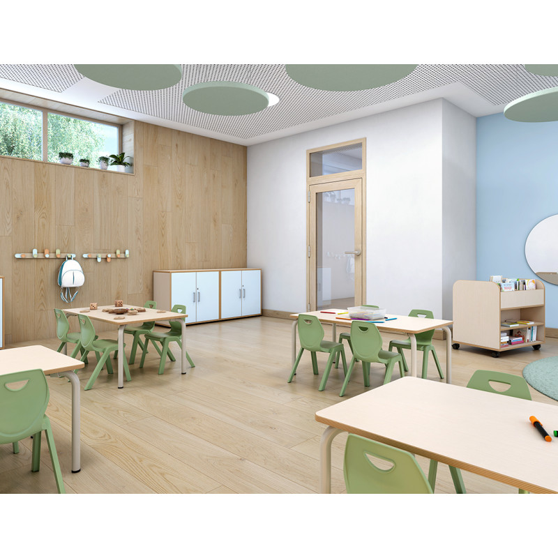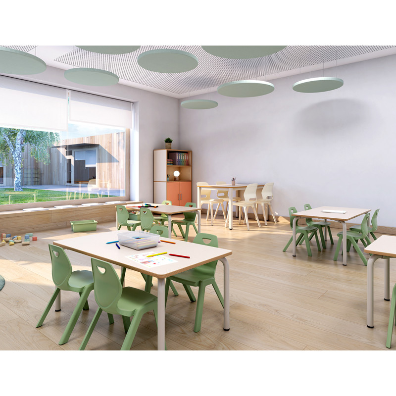 Krēsls izgatavots no izturīgas, viegli kopjamas plastmasas, tāpēc tas ir ideāli piemērots visu veidu izglītības telpām – no bērnudārziem un skolām līdz bibliotēkām, ēdnīcām vai mācību zālēm. Krēsls ir ļoti stabils, viegls un viegli sakraujams viens uz otra.