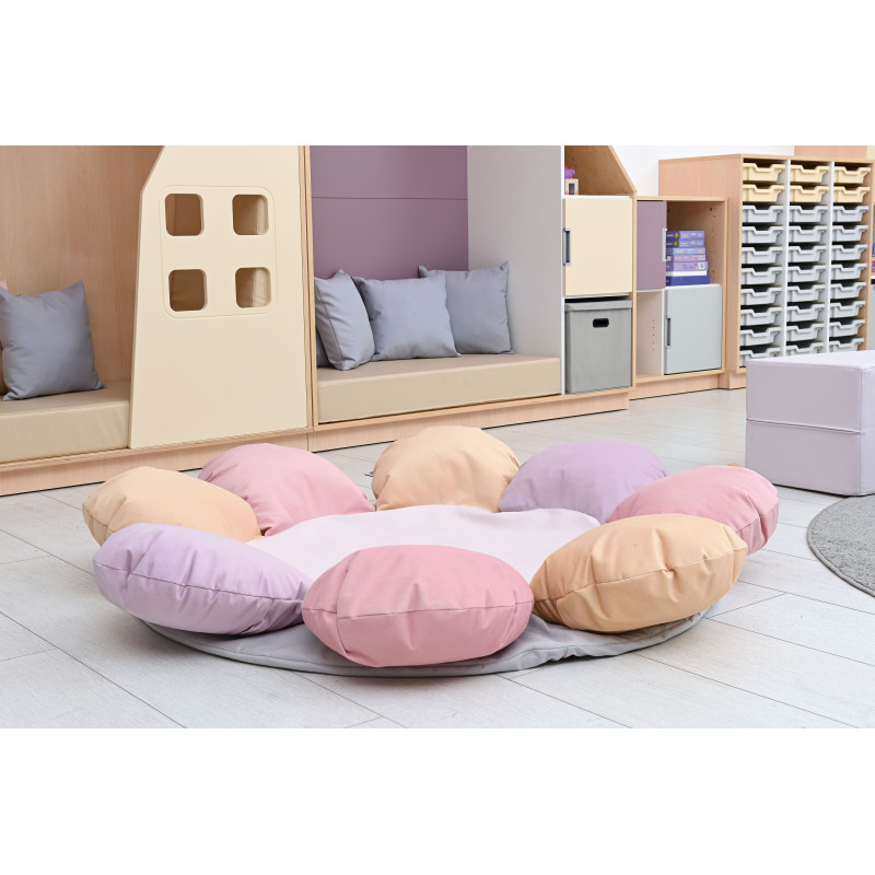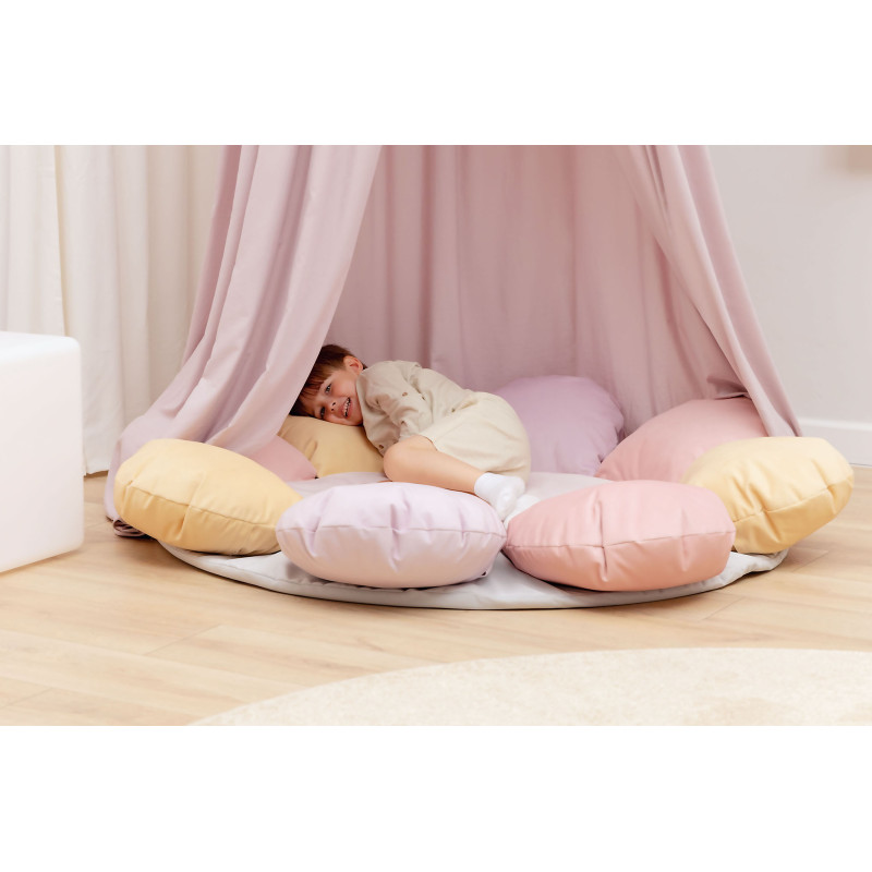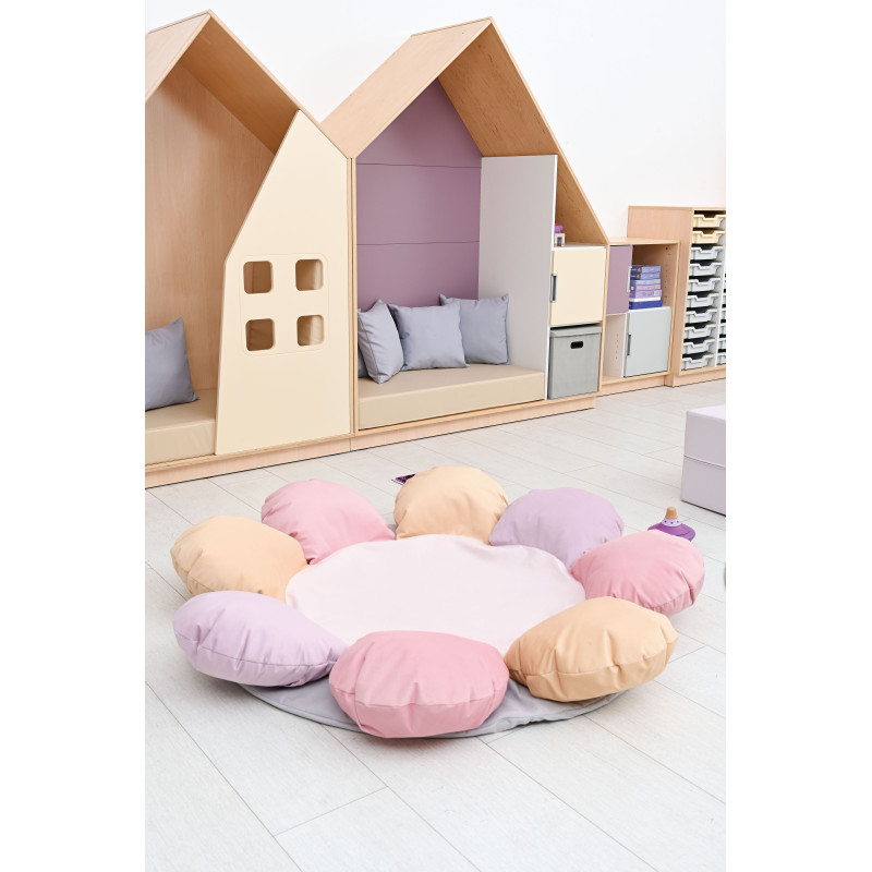 Spilvens ir pārklāts ar kokvilnas audumu. Var mazgāt veļas mašīnā 30 grādu temperatūrā.