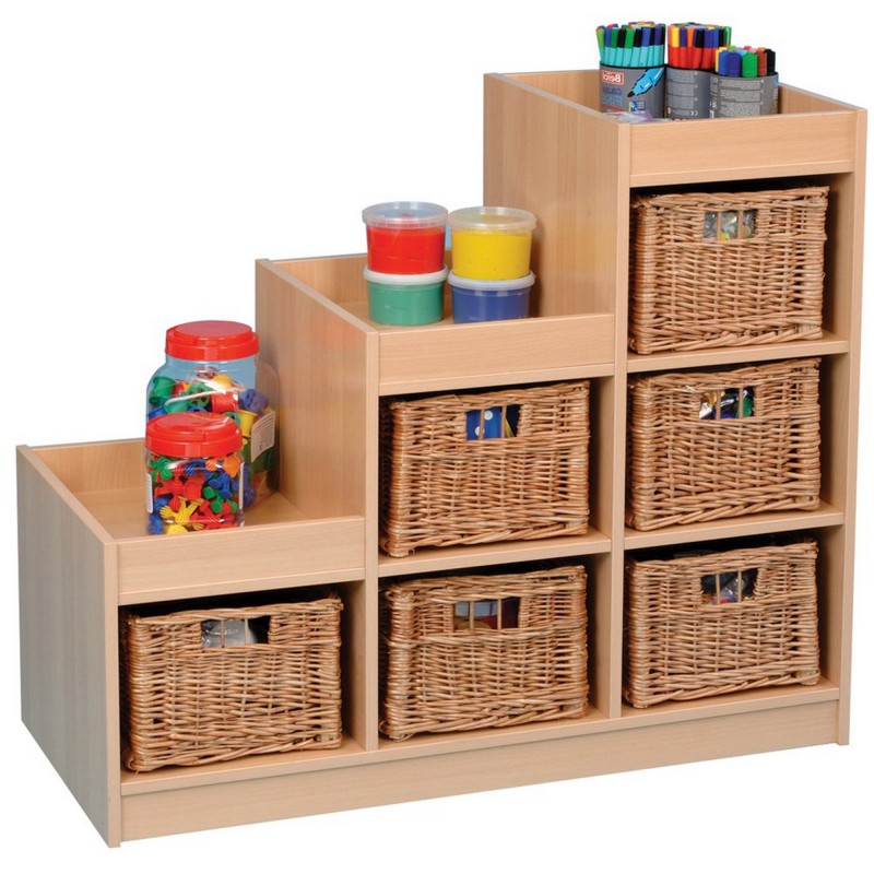 Skapis ir paredzēts dažādu rotaļlietu uzglabāšanai. Ar atvērtiem nodalījumiem jūs varat viegli un ātri izvēlēties priekšmetus rotaļām vai citām aktivitātēm. Ļoti praktisks skapis. Attēlā redzamās kastes netiek pārdotas .