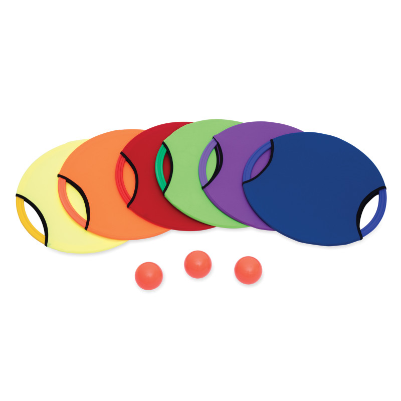 Interesanta veiklības spēle, kurā spēlētāji izmanto mini tramplīnus, lai atsistu un noķertu bumbiņas. Aprīkojumam ir elastīgs materiāls un ērtas rokturi, kas atvieglo turēšanu un manevrēšanu. Spēle attīsta refleksus, roku un acu koordināciju, kā arī komandas prasmes. To var izmantot gan sporta zālēs, gan ārā, nodrošinot aktīvu un aizraujošu izklaidi.