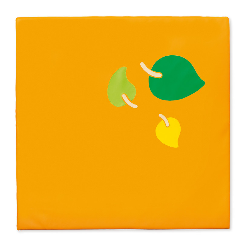 Oranžas krāsas kvadrātveida matracis ar rudens motīvu aplikācijām, pārklāts ar ftalātus nesaturošu, nodilumizturīgu PVC audumu un pildīts ar augstas elastības poliuretāna putām, ir izcils līdzeklis terapijai, rehabilitācijai un stiprinošiem vingrinājumiem.